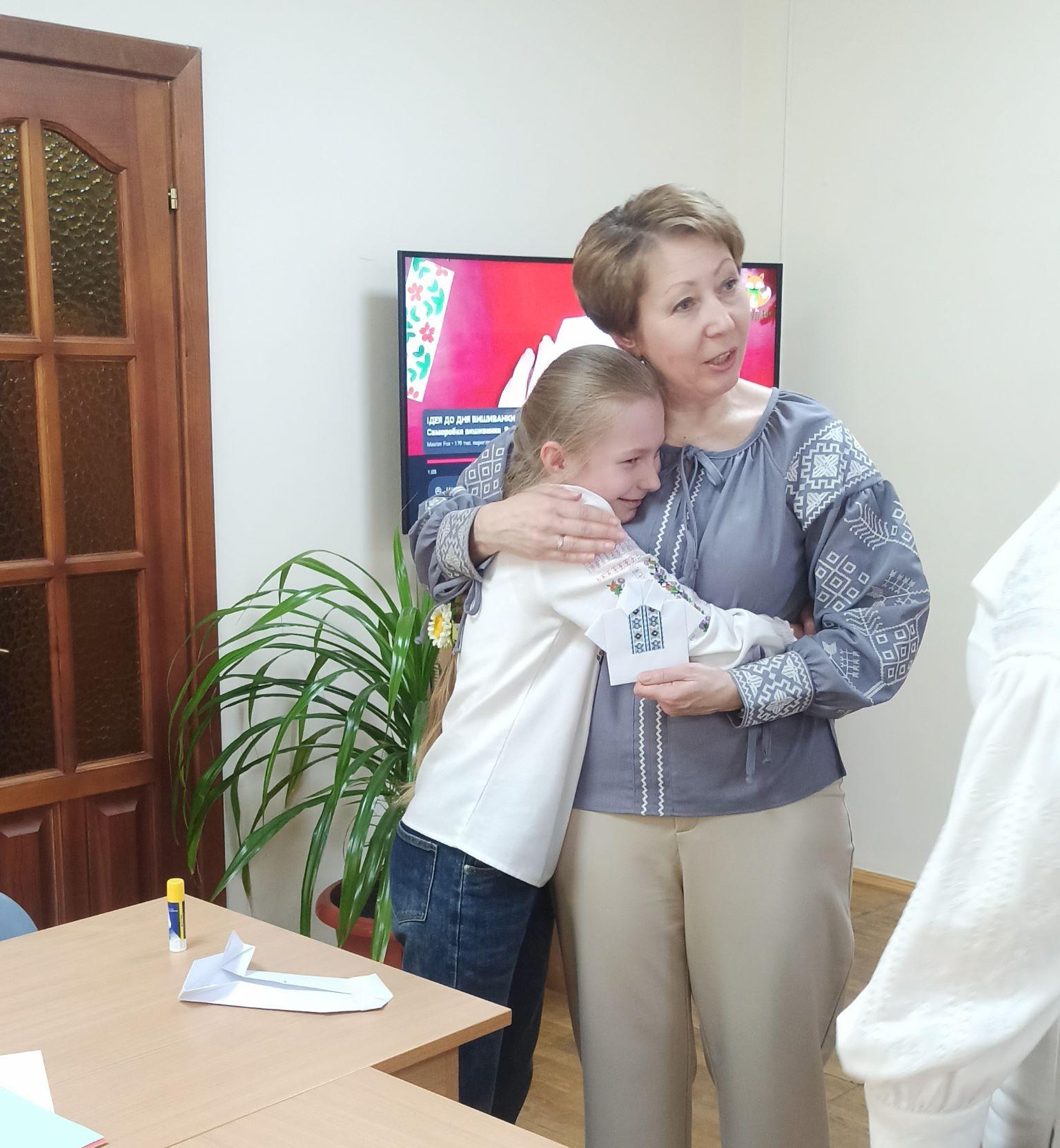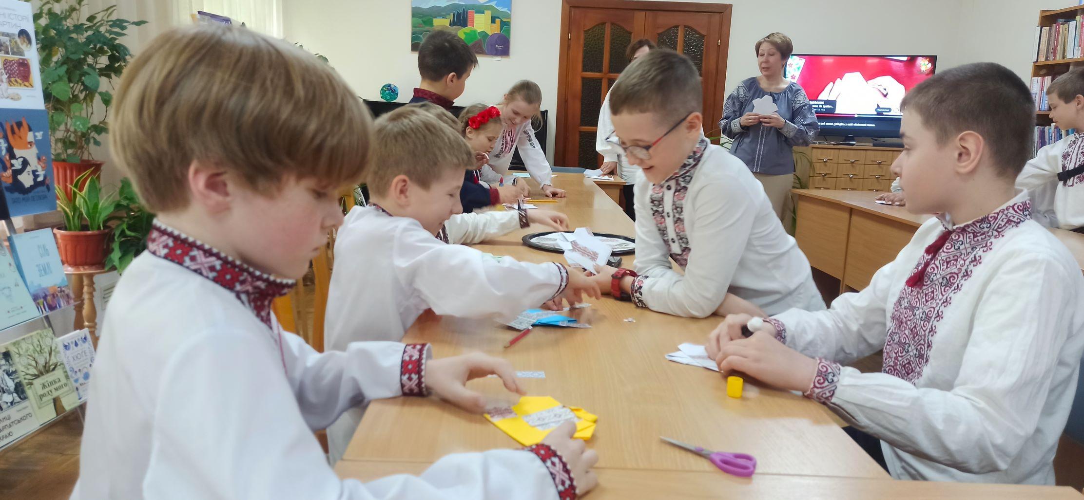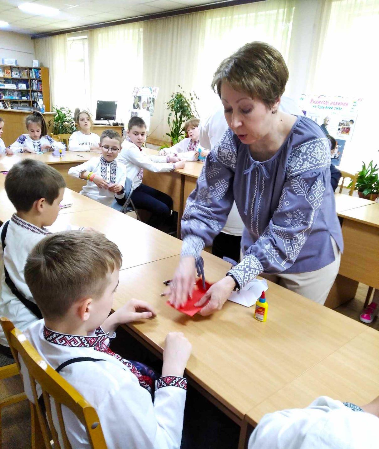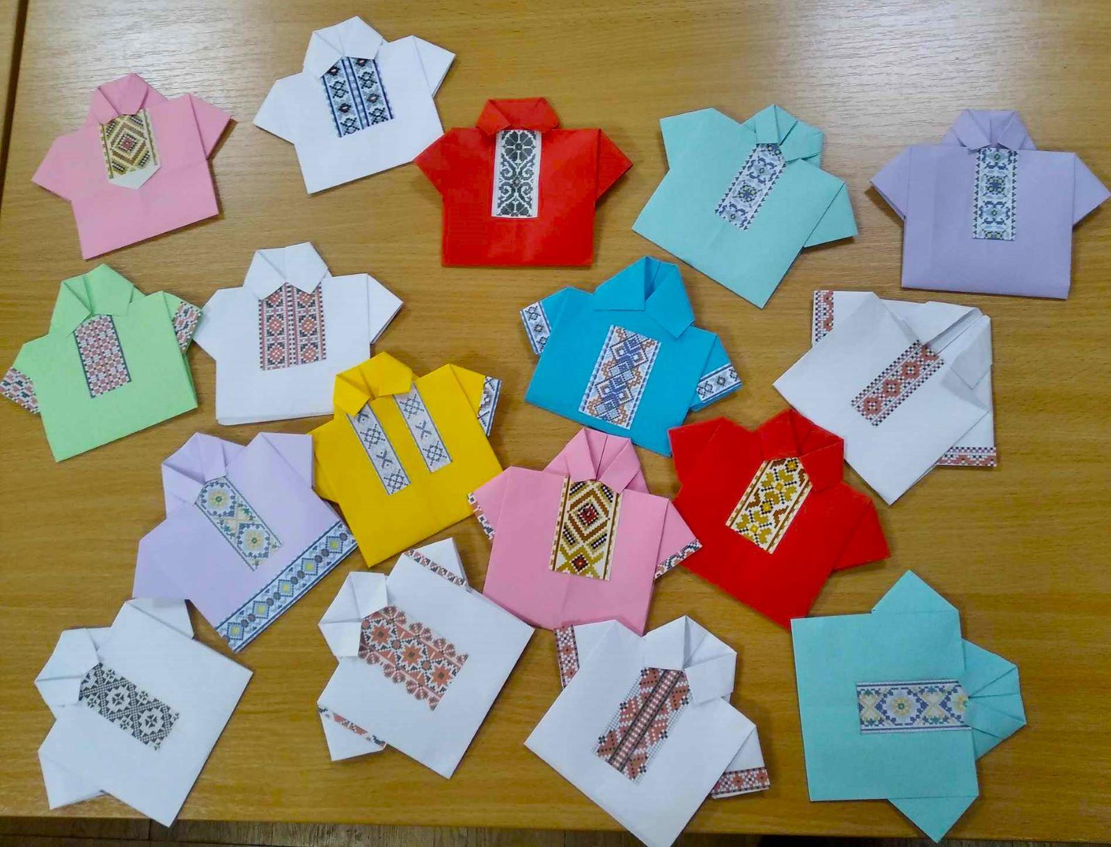 Бібліотекарка Оксана Олексіївна розповіла дітям багато цікавих фактів з історії вишиванки, про відмінність кольорів та візерунків у різних регіонах. Дітлахи роздивлялися свої вишиванки, розшифровуючи вишиті візерунки, захоплено розпитували про символізм автентичних речей, якими наповнена бібліотечна «Українська світлиця», також радо ділились традиціями, які збереглися в їх сім’ях. А пропозиція зробити маленькі сувеніри -сорочки-вишиванки в техніці оригамі викликала неабияке творче захоплення. Бо вишиванка це модно і сучасно!