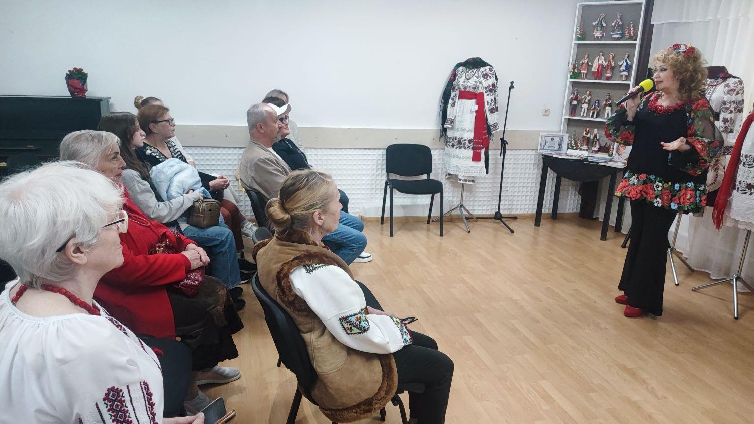 Ольга не стільки розповідала не стільки про самі костюми та особливості вишивки (в бібліотеці можна ознайомитись з їх з мамою книгою «Духовний скарб українського народу»), але більше звертала увагу на значення народного костюму для української нації,  на духовний зв’язок між поколіннями українців. Розповіді супроводжувались, піснями та  відеосюжетами про колекції та творчість. Адже Тамара і Ольга Угнівенки доклали чимало зусиль до створення етнографічних музеїв Бородянки та Немішаєва. Мабуть лише заступництво вищих сил залишило їх майже неушкодженими під час навали рашистів.